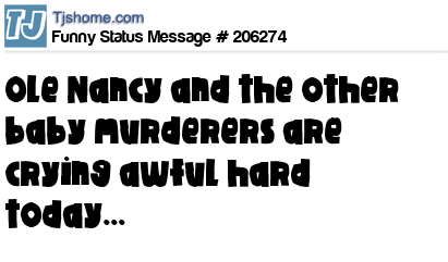 X says Ole Nancy and the other baby murderers are crying awful hard today...