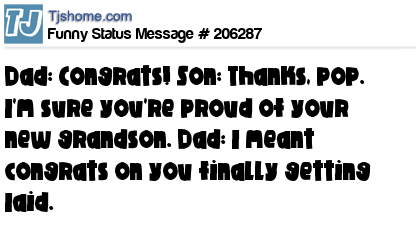 X says Dad: Congrats! Son: Thanks, pop. I'm sure you're proud of your new grandson. Dad: I meant congrats on you finally getting Iaid.