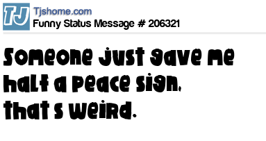 - # 203929 Someone just gave me half of a peace sign. Weird.