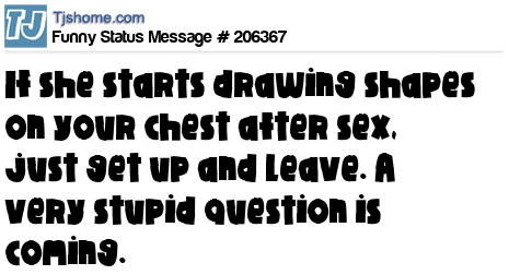 X says If she starts drawing shapes on your chest after sex, just get up and leave. A very stupid question is coming.
