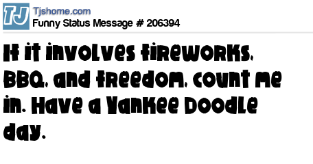 X says If it involves fireworks, BBQ, and freedom, count me in. Have a Yankee Doodle day.
