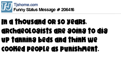 - # 72976 Because of tanning beds, 1000 years from now archeologists will think we used to fry people as punishment