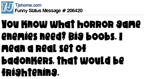 X says You know what horror game enemies need? Big boobs. I mean a real set of badonkers, that would be frightening.