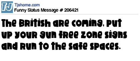 X says The British are coming, put up your gun free zone signs and run to the safe spaces.