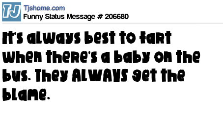 X says It's always best to fart when there's a baby on the bus. They ALWAYS get the blame.