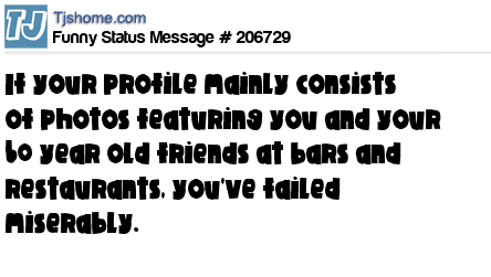 X says If your profile mainly consists of photos featuring you and your 60 year old friends at bars and restaurants, you've failed miserably.
