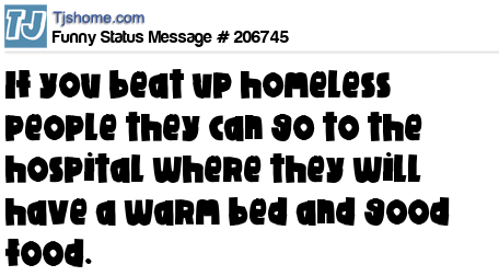 X says If you beat up homeless people they can go to the hospital where they will have a warm bed and good food.