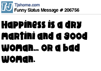 X says Happiness is a dry martini and a good woman… or a bad woman.