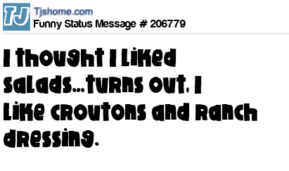 X says I thought I liked salads…turns out, I like croutons and ranch dressing.