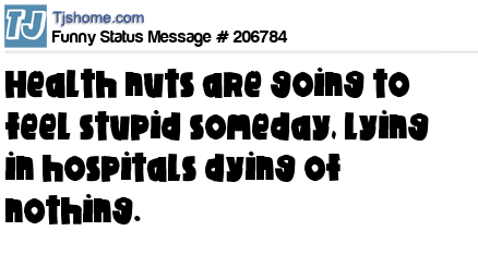 - # 78641 Health nuts are going to feel stupid one day when they are lying in hospitals, dying of nothing