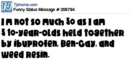 X says I’m not so much 50 as I am 5 10-year-olds held together by ibuprofen, Ben-Gay, and weed resin.