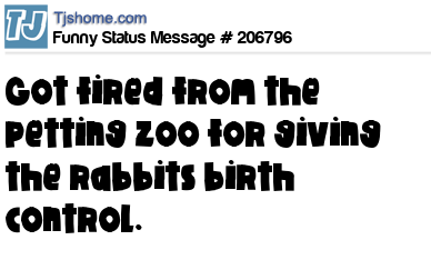 X says Got fired from the petting zoo for giving the rabbits birth control.