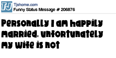 - # 160567 I'm getting really tired of having to remind my wife she's happily married.