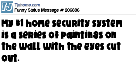 X says My #1 home security system is a series of paintings on the wall with the eyes cut out.