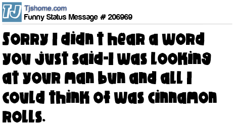 X says Sorry I didn’t hear a word you just said-I was looking at your man bun and all I could think of was cinnamon rolls.