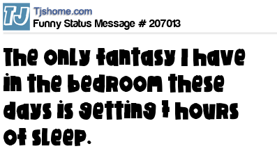 X says The only fantasy I have in the bedroom these days is getting 7 hours of sleep.