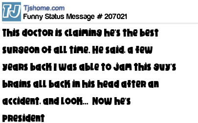X says This doctor is claiming he's the best surgeon of all time. He said, a few years back I was able to jam this guy's brains all back in his head after an accident, and look...  Now he's president