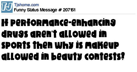 - # 203723 If drugs aren't allowed in sports then why is makeup allowed in beauty contests?