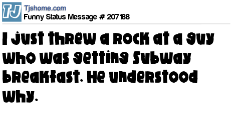 X says I just threw a rock at a guy who was getting Subway breakfast. He understood why.