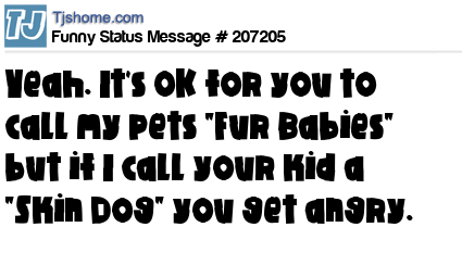X says Yeah. It's OK for you to call my pets "Fur Babies" but if I call your kid a "Skin Dog" you get angry.