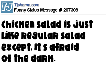 X says Chicken salad is just like regular salad except, it’s afraid of the dark.