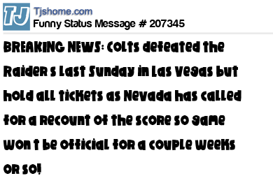 X says BREAKING NEWS: Colts defeated the Raider’s last Sunday in Las Vegas but hold all tickets as Nevada has called for a recount of the score so game won’t be official for a couple weeks or so!