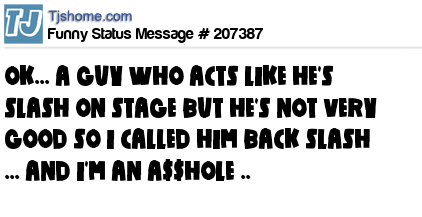 X says OK... A GUY WHO ACTS LIKE HE'S SLASH ON STAGE BUT HE'S NOT VERY GOOD SO I CALLED HIM BACK SLASH ... AND I'M AN A$$HOLE ..
