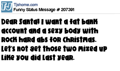 - # 207408 Dear Santa: For Christmas this year I want a fat bank account and a slim body with sexy abs, but let's not get it mixed up like you did last year.