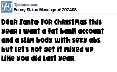 - # 116572 Santa, this Christmas all I want is a fat bank account and a slim body. Lets not mix the two up like last year, ok?