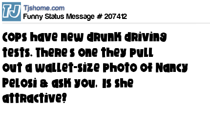 - # 201255 Cops got new drunk driving tests. There’s one they pull out a wallet-size photo of Nancy pelosi & ask you, ‘Is she attractive?’