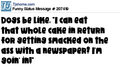 X says Dogs be like, "I can eat that whole cake in return for getting smacked on the ass with a newspaper? I'm goin' in!"