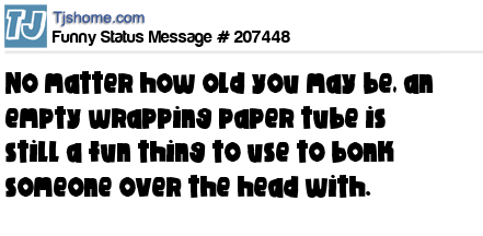 - # 209364 No matter how old you are, an empty Christmas wrapping paper tube is still fun to bonk someone over the head with.