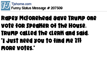 X is Rapey McForehead gave Trump one vote for Speaker of the House. Trump called the clerk and said, "I just need you to find me 217 more votes."