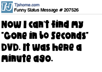- # 204606 I can't seem to find my "Gone in 60 Seconds" DVD. It was here a minute ago.