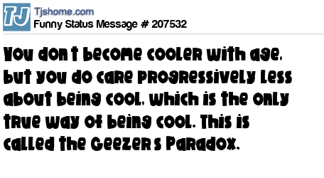 X says You don’t become cooler with age, but you do care progressively less about being cool, which is the only true way of being cool. This is called the Geezer’s Paradox.