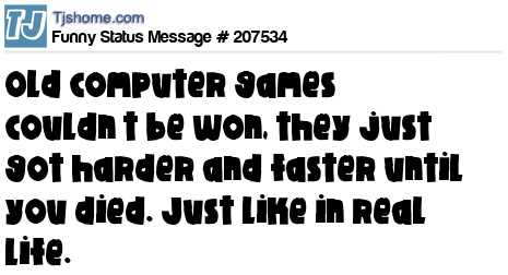 X says Old computer games couldn’t be won, they just got harder and faster until you died. Just like in real life.