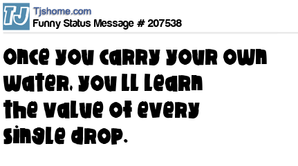 X says Once you carry your own water, you’ll learn the value of every single drop.