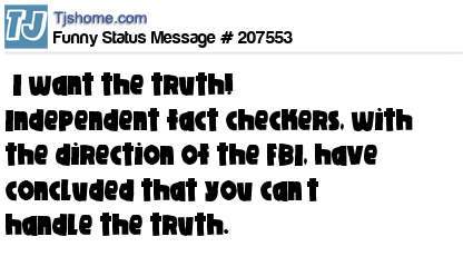 X says “I want the truth!” Independent fact checkers, with the direction of the FBI, have concluded that you can’t handle the truth.