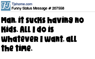 X says Man, it sucks having no kids. All I do is whatever I want, all the time.