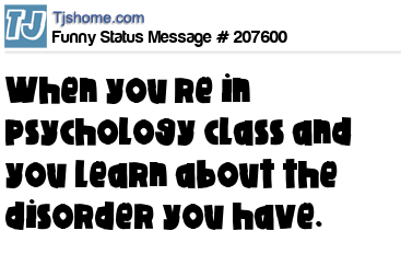 X says When you’re in psychology class and you learn about the disorder you have.