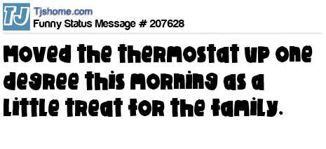 X says Moved the thermostat up one degree this morning as a little treat for the family.