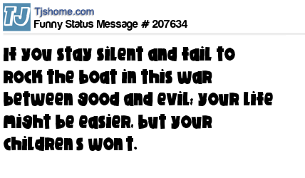 X says If you stay silent and fail to rock the boat in this war between good and evil; your life might be easier, but your children’s won’t.