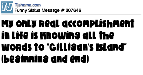 X says My only real accomplishment in life is knowing all the words to "Gilligan's Island" (beginning and end)