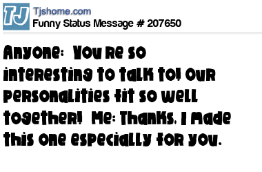 X says Anyone: “You’re so interesting to talk to! Our personalities fit so well together!” Me: Thanks, I made this one especially for you.