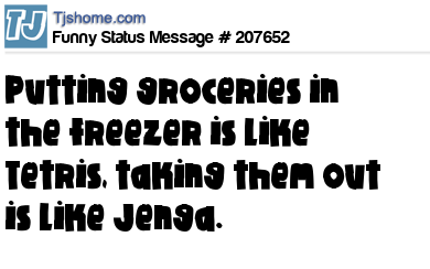 X says Putting groceries in the freezer is like Tetris, taking them out is like Jenga.