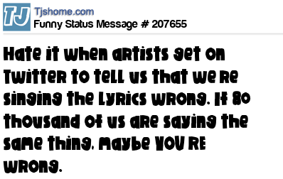 X says Hate it when artists get on Twitter to tell us that we’re singing the lyrics wrong. If 80 thousand of us are saying the same thing, maybe YOU’RE wrong.
