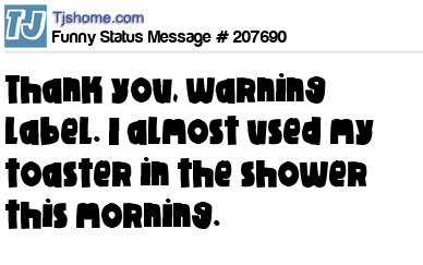 X says Thank you, warning label. I almost used my toaster in the shower this morning.