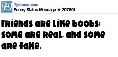 - # 208235 All of you, my friends are like boobs. Some of y’all are real, some are fake. But all of y’all need to be pinched.
