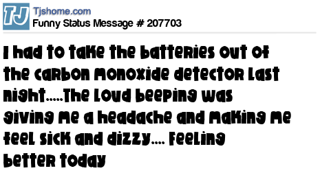 X says I had to take the batteries out of the carbon monoxide detector last night.....The loud beeping was giving me a headache and making me feel sick and dizzy.... Feeling better today