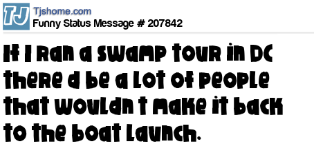 X says If I ran a swamp tour in DC there’d be a lot of people that wouldn’t make it back to the boat launch.
